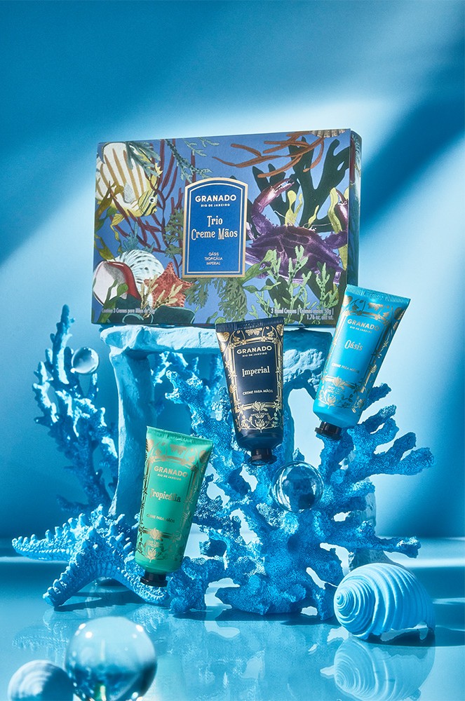 Za ljubitelje njege ruku, tu je elegantni Deep Sea Wonders Hand Cream Trio – tri bogate kreme za ruke (Imperial, Tropicália i Oásis) obogaćene biljnim uljima açaíja i slatkog badema. Njihova lagana tekstura brzo se upija, a koža ostaje glatka i mirisna satima.